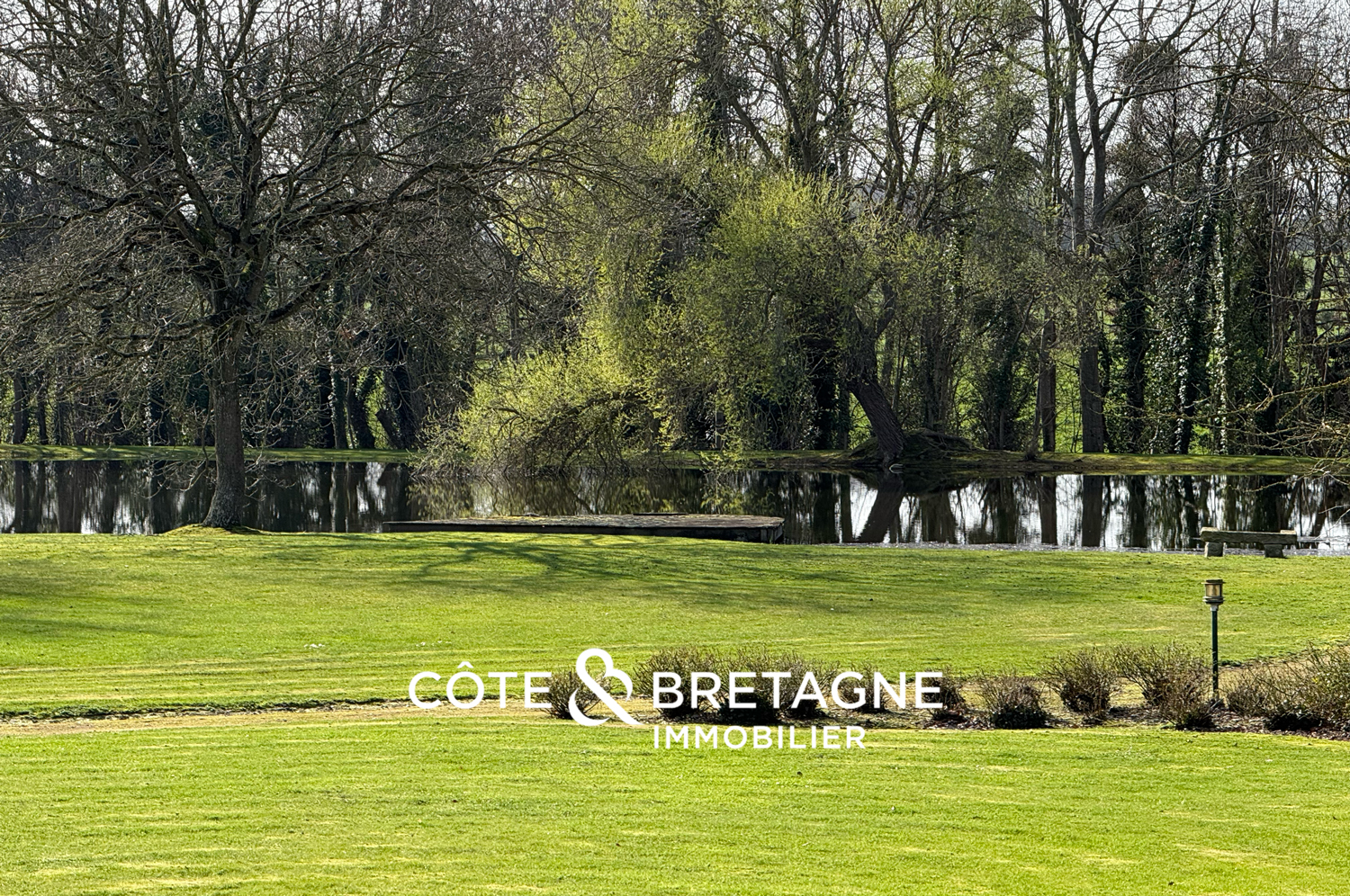 Le domaine s’étend sur près de 6 hectares, dans une composition paysagère remarquable où alternent parc arboré, espaces boisés, pinède et perspectives dégagées. Deux étangs, reliés par un pont en bois, apportent au lieu une présence poétique et paisible, comme un décor façonné pour les promenades et les instants de contemplation. Dès l’entrée, le portail automatique avec visiophone ouvre sur une longue allée arborée qui accompagne l’arrivée vers la maison avec beaucoup d’élégance. À l’abri des regards, cette propriété familiale dans les Côtes-d’Armor offre une intimité rare, en parfaite résonance avec la beauté du site.
