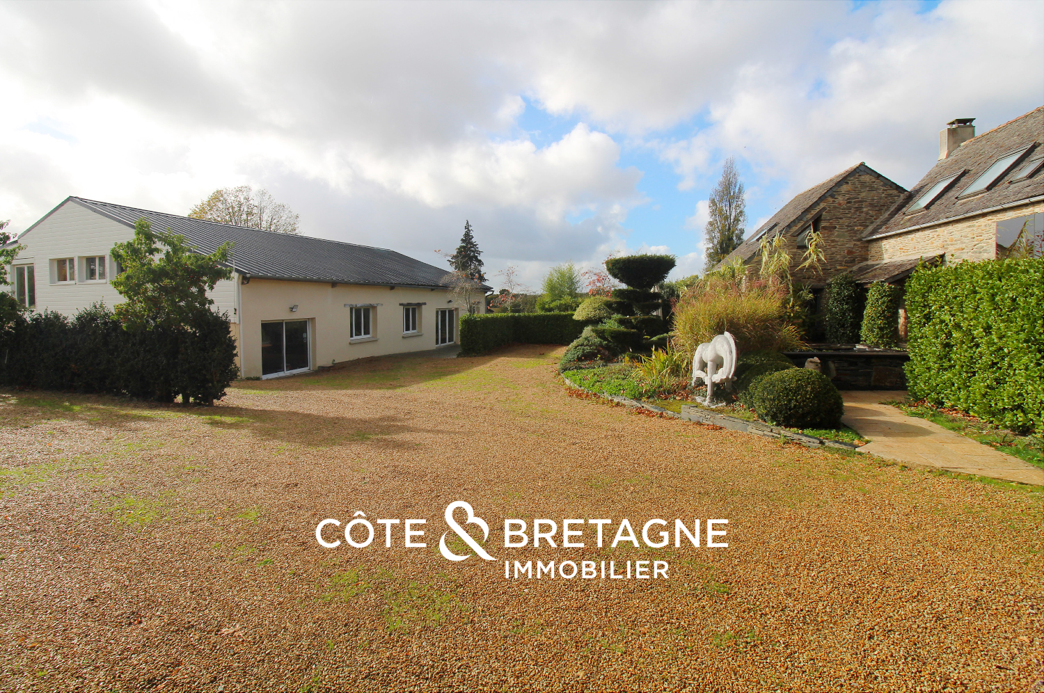 Côte & Bretagne Immobilier vous propose au cœur du pays de Morlaix, un domaine paysager, dans un écrin de verdure apaisant, pour une vie d’exception ou exercice professionnel.
