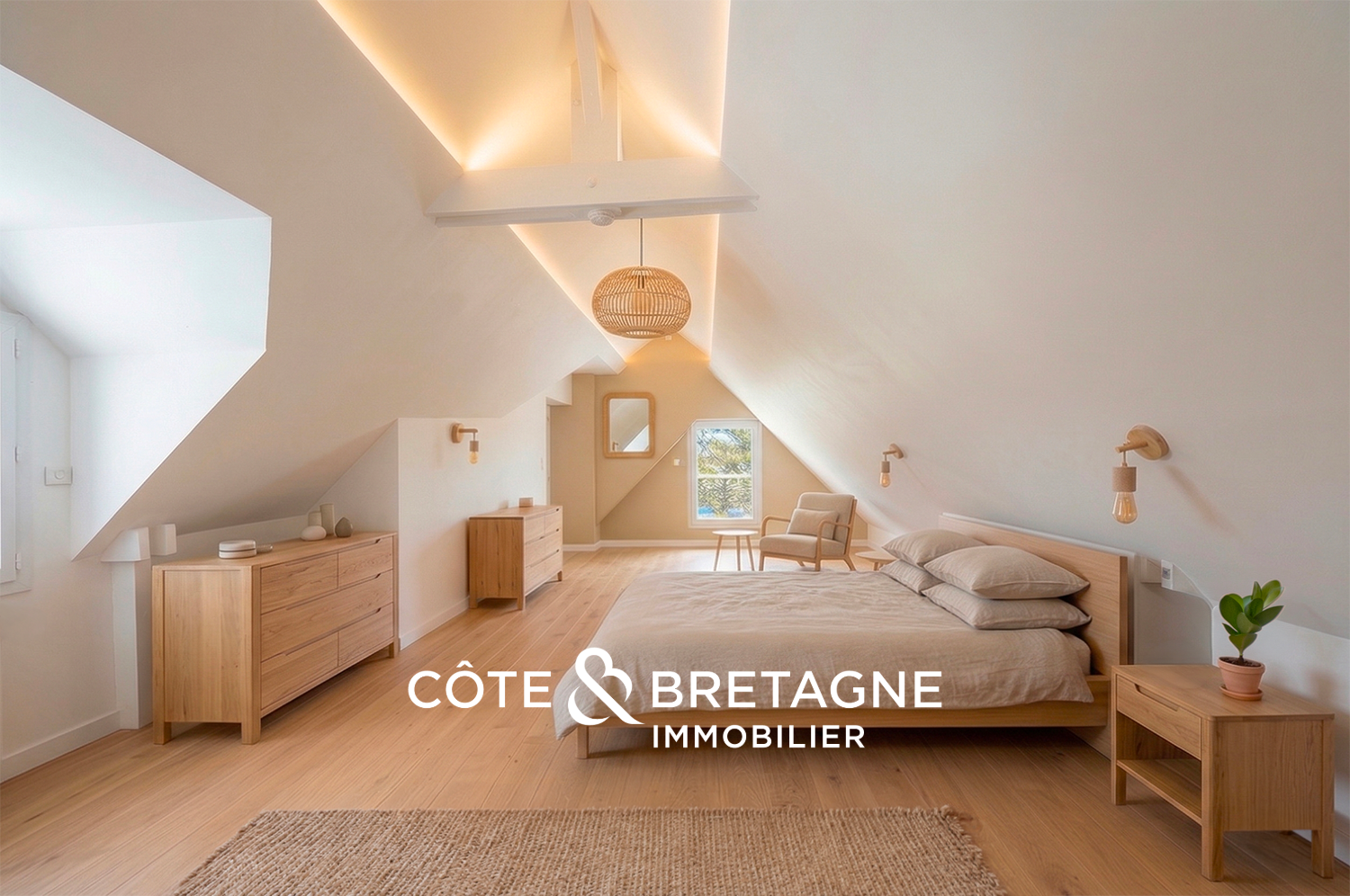 À quelques minutes seulement du cœur de Séné, la maison trouve un équilibre subtil entre vie pratique et environnement naturel. L’accès privatif à la plage inscrit le lieu dans une relation directe à la mer, offrant une expérience de vie à part.