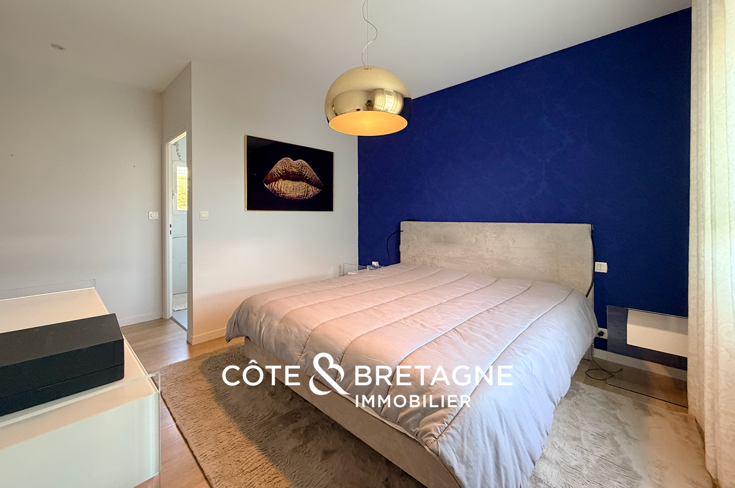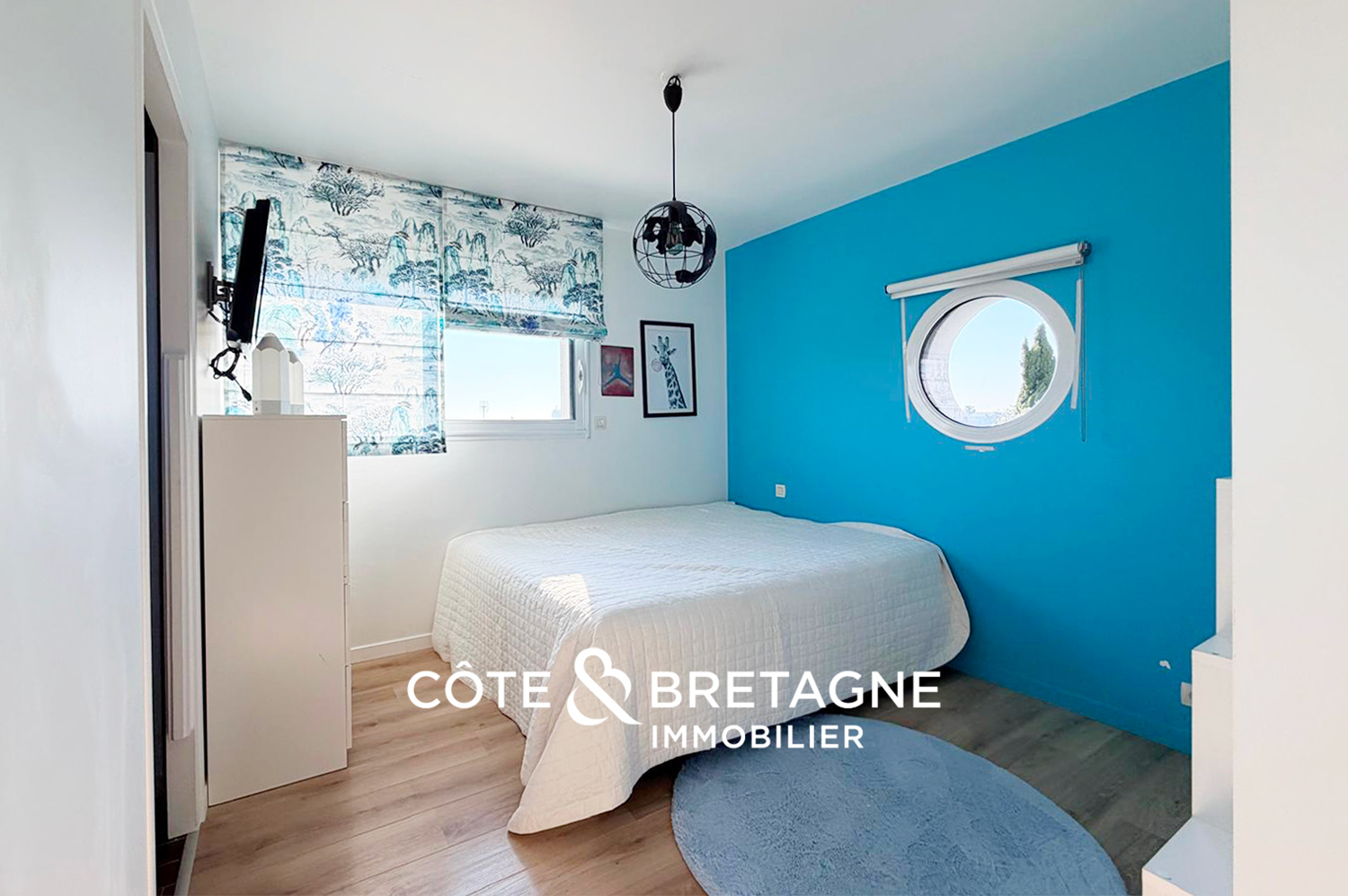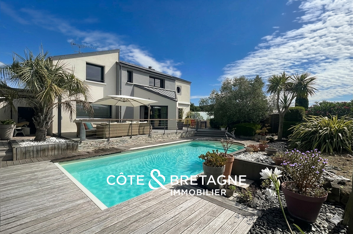 À Plérin, à proximité immédiate du port du Légué, cette maison contemporaine de sept pièces révèle une écriture architecturale soignée, pensée pour conjuguer confort de vie et esthétisme. Implantée sur un terrain clos et arboré de 1 120 m², elle s’inscrit dans un environnement résidentiel recherché, où la quiétude se mêle à la proximité du littoral.