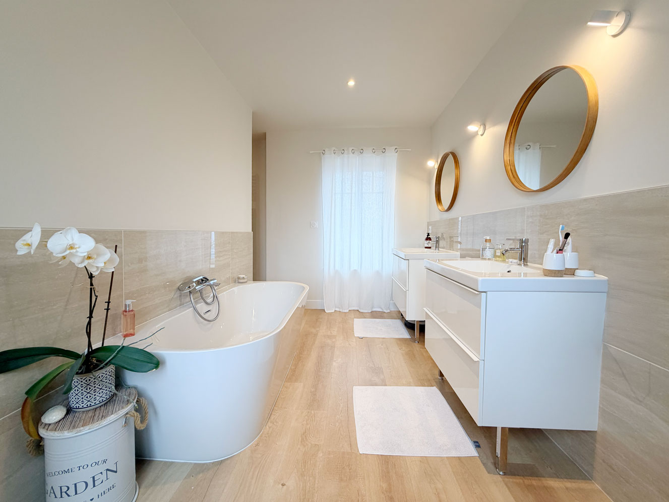 Le premier étage accueille une suite parentale confortable, avec un vaste dressing et une salle de bains complète (douche et baignoire), formant un véritable espace nuit indépendant ou suite parentale. En rez-de-jardin, trois chambres supplémentaires bénéficient d’une belle luminosité. Certaines disposent de leur propre salle d’eau, les autres se partagent une salle d’eau commune. La distribution, claire et équilibrée, assure à chacun calme et intimité. Une vaste buanderie très bien pensée se loge à ce niveau