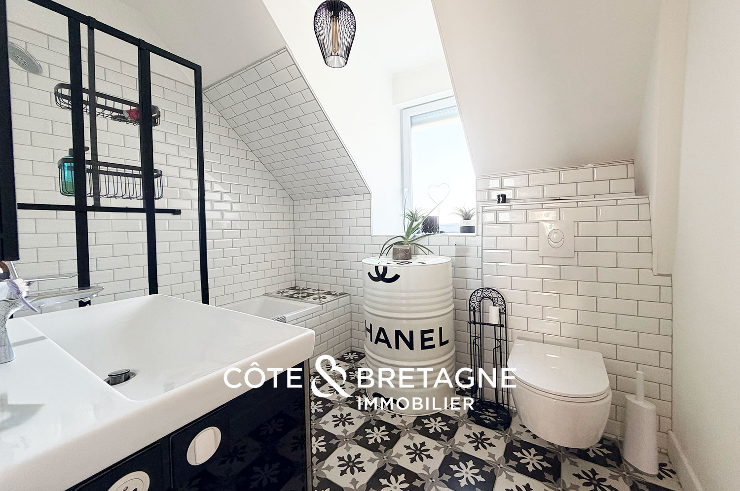 À Saint-Brieuc, dans le quartier résidentiel de Saint-Michel, cette maison de ville en pierre bénéficie d’une situation recherchée, à proximité immédiate du centre-ville, des commerces, des écoles et des services. Un emplacement apprécié pour sa tranquillité, son architecture soignée et la qualité de vie qu’il offre au quotidien.