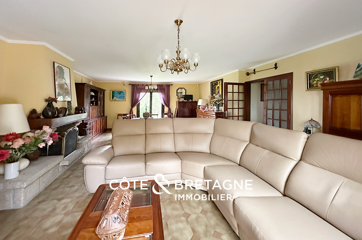 L’entrée ouvre sur un séjour, prolongé par une véranda ouverte sur le jardin. L’ensemble compose un espace de vie particulièrement agréable, invitant à la détente et au partage.