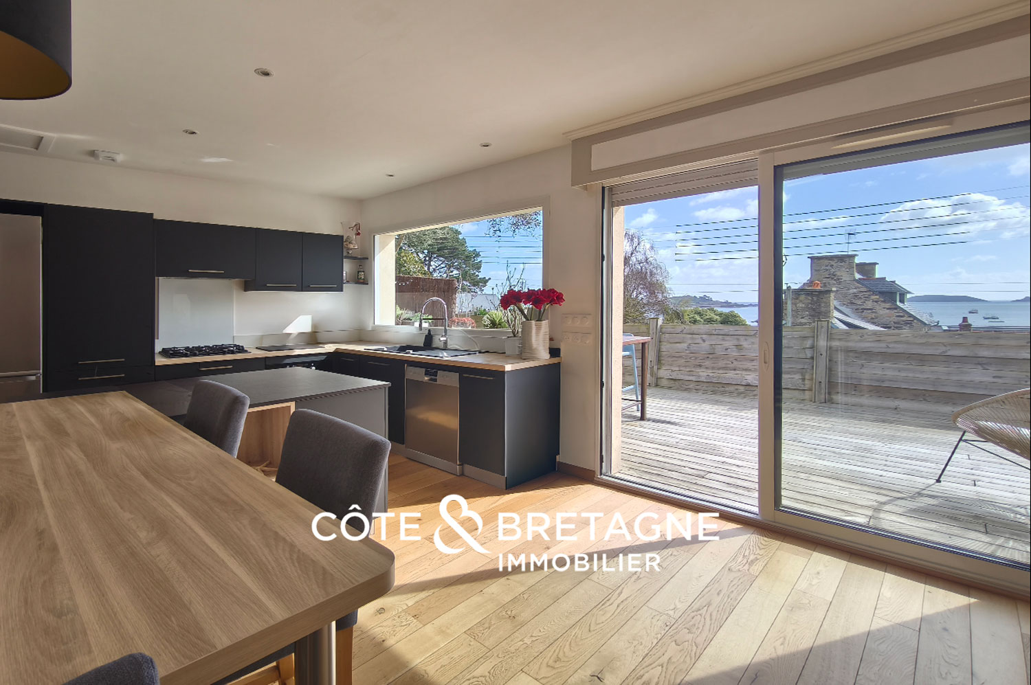 Entièrement repensée avec soin, cette maison développe une surface d’environ 164 m² et prend place sur un terrain de 671 m². Elle conjugue avec élégance le cachet de l’ancien et une extension contemporaine résolument tournée vers l’océan.