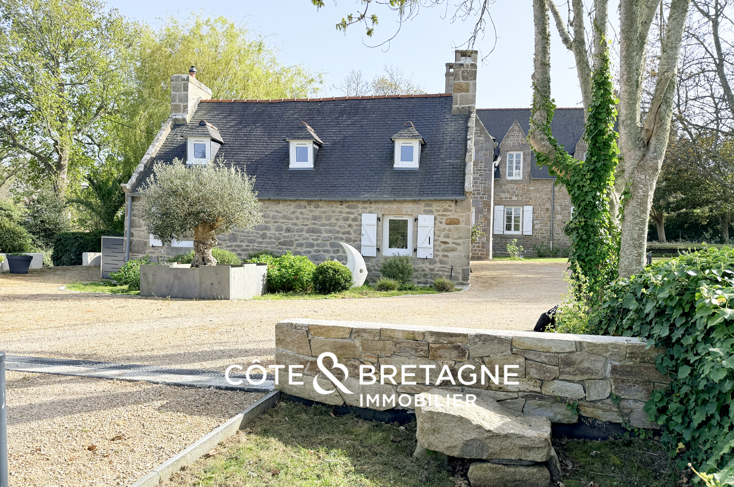 Située sur la magnifique Côte de Granit Rose, dans les Côtes-d’Armor, à deux pas du littoral, cette propriété d’exception s’étend sur un parc paysager de plus de 7 000 m², dans un environnement calme et préservé. Elle se compose d’une maison principale et d’un penty, lui conférant un charme authentique et rare.
