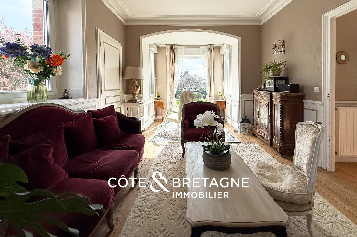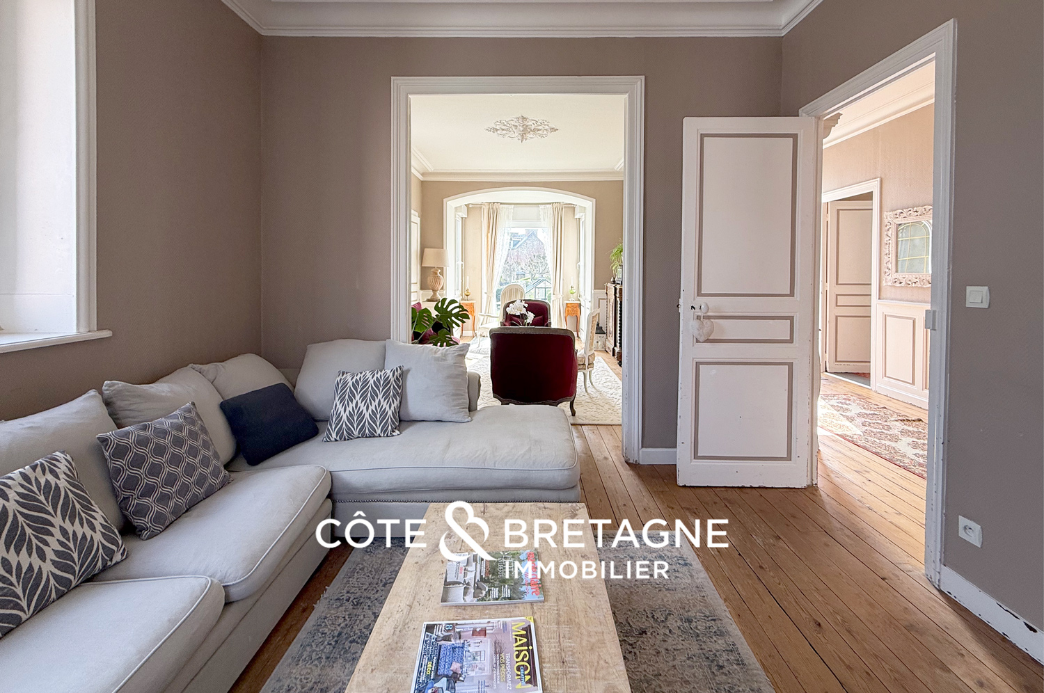 Idéalement située à Étables-sur-Mer, dans un secteur côtier particulièrement recherché, cette propriété de caractère du début du XXᵉ siècle bénéficie d’un emplacement rare, à quelques pas de la plage et des commerces. Édifiée au cœur d’un terrain arboré de 1 268 m², elle offre un cadre de vie paisible et verdoyant où la mer et la nature se rencontrent harmonieusement.