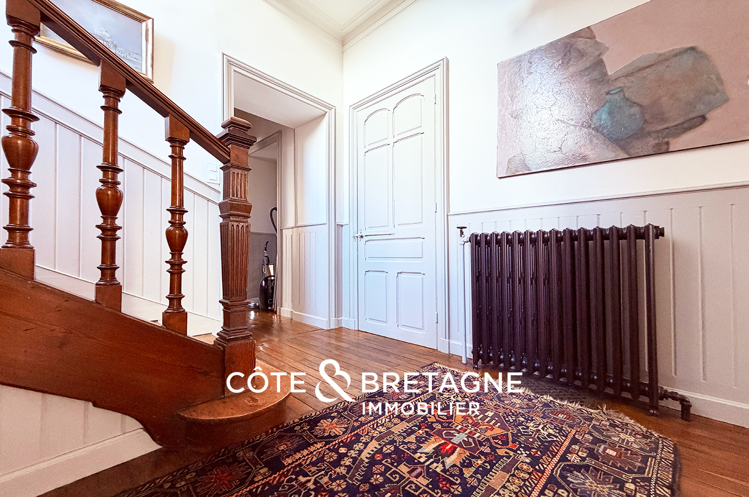 Entièrement rénovée, entièrement repeinte et parfaitement entretenue, la maison répond aux attentes actuelles en matière de confort tout en préservant son âme. Elle bénéficie notamment d’une pompe à chaleur, d’un double vitrage PVC et d’un grand sous-sol avec caves et buanderie. Ces prestations viennent compléter avec discrétion la noblesse de la bâtisse et renforcent le confort quotidien. Cette maison à Saint-Brieuc incarne ainsi l’équilibre entre patrimoine, modernité et qualité de vie.