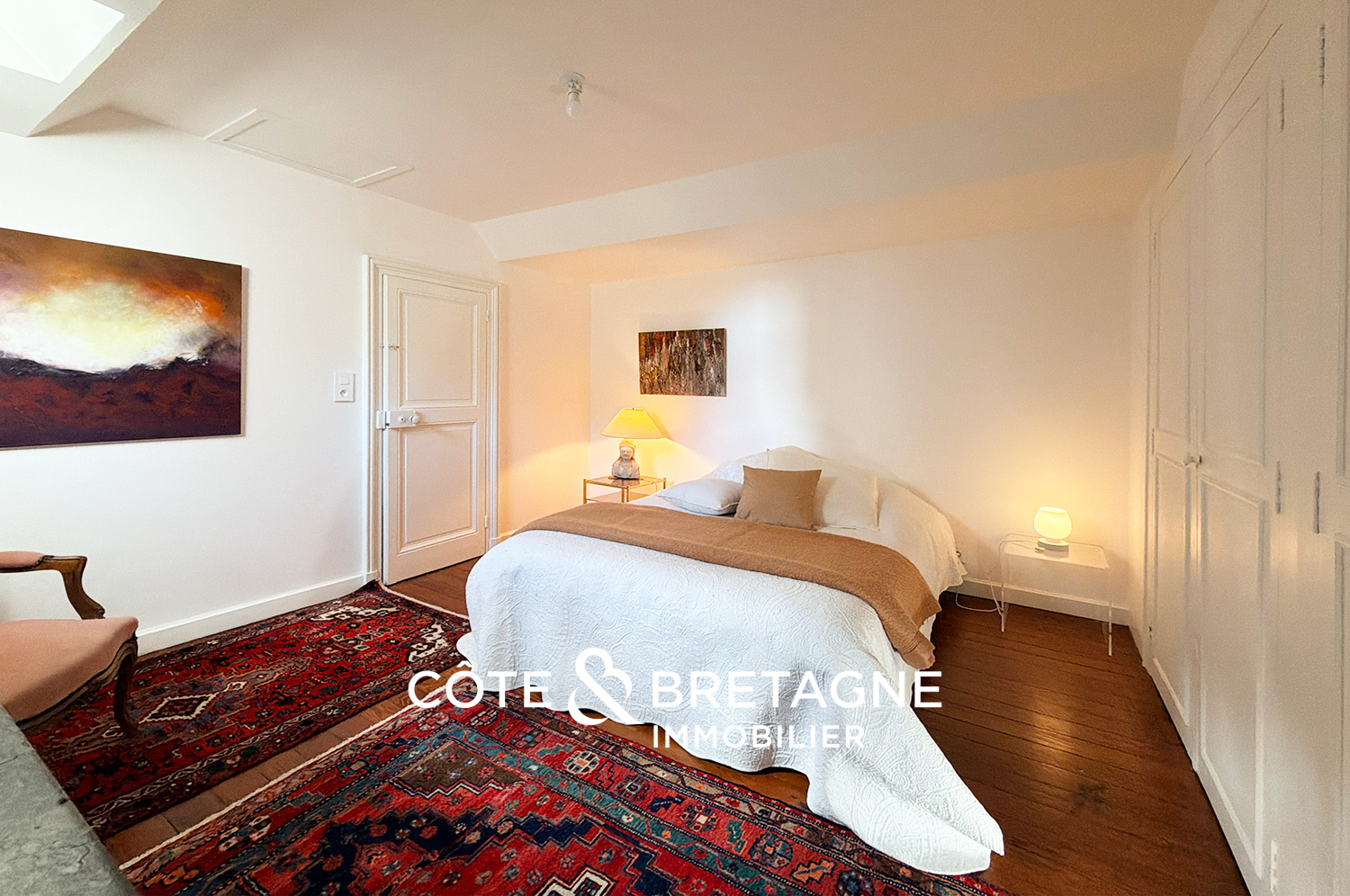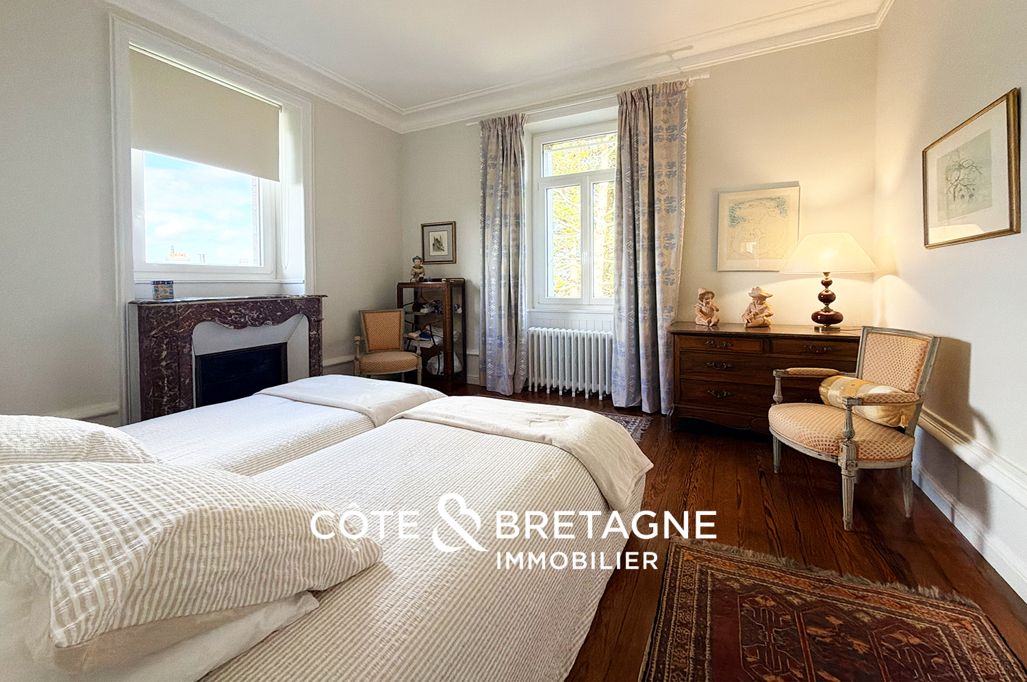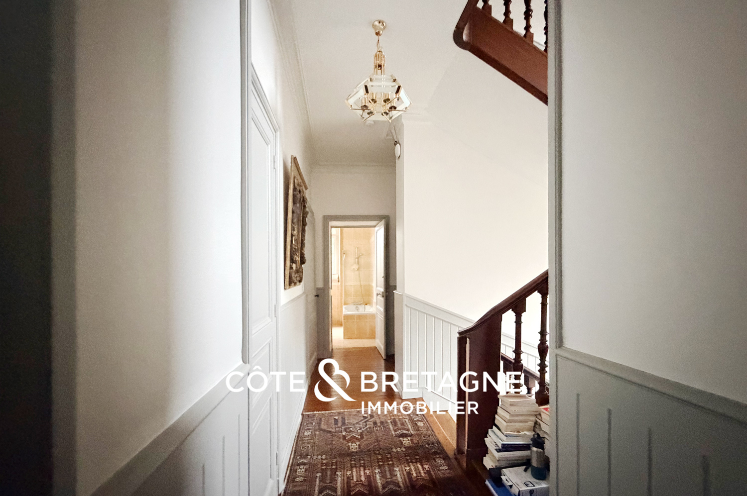 Desservis par l’escalier central, les étages accueillent des volumes adaptés à une grande vie de famille. Le premier étage propose quatre belles chambres, dont une avec salle d’eau privative, ainsi qu’une salle de bains. Le dernier niveau complète l’ensemble avec deux autres chambres, une salle d’eau et des espaces grenier. Cette propriété familiale à Saint-Brieuc offre ainsi une distribution fluide, équilibrée et confortable, permettant de recevoir, de travailler depuis chez soi ou simplement de profiter d’une maison aux espaces généreux dans l’un des quartiers les plus appréciés de la ville.