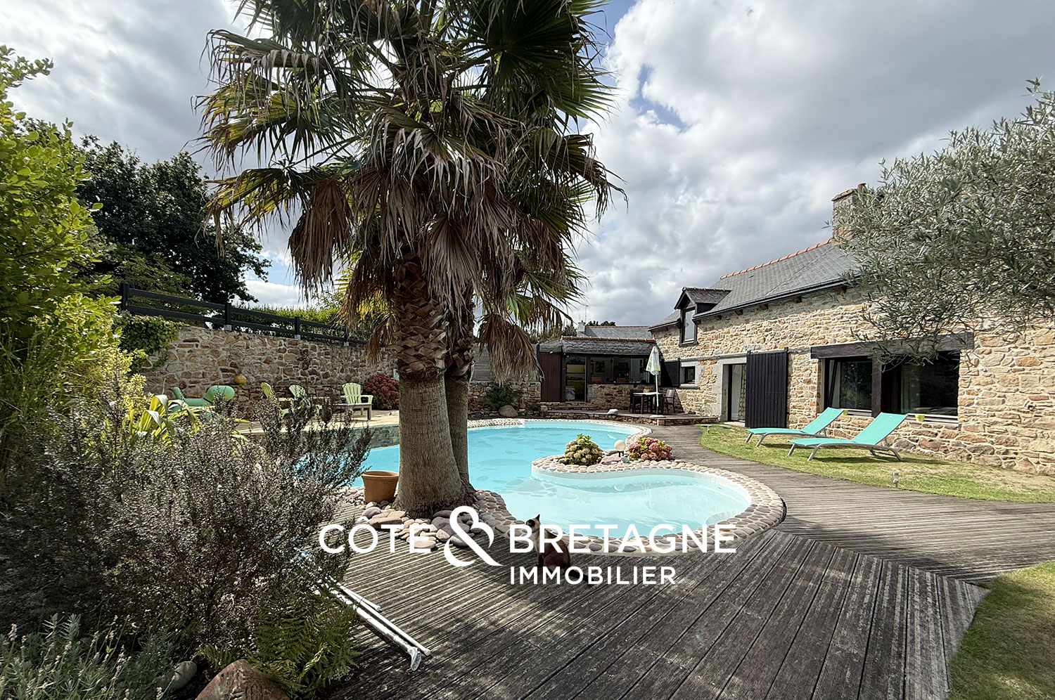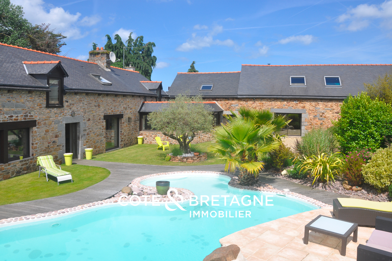 Demeure en pierre rénovée avec piscine, jardin et garage à Saint-Brieuc.