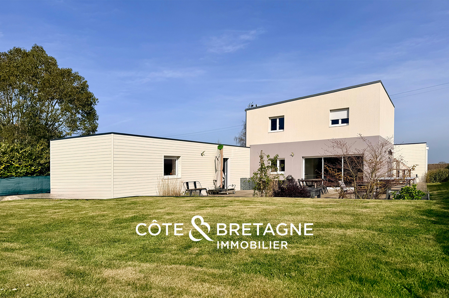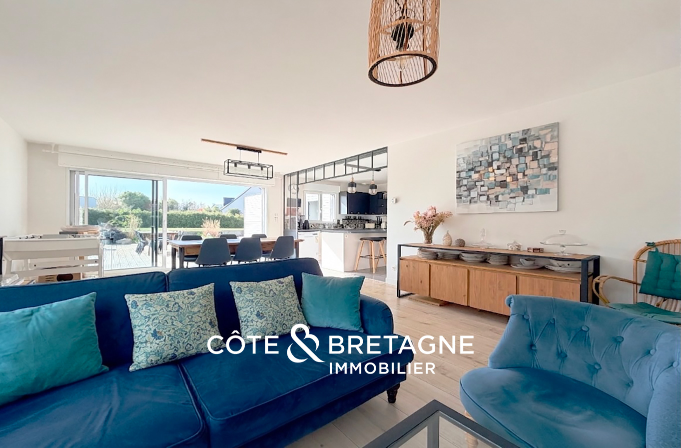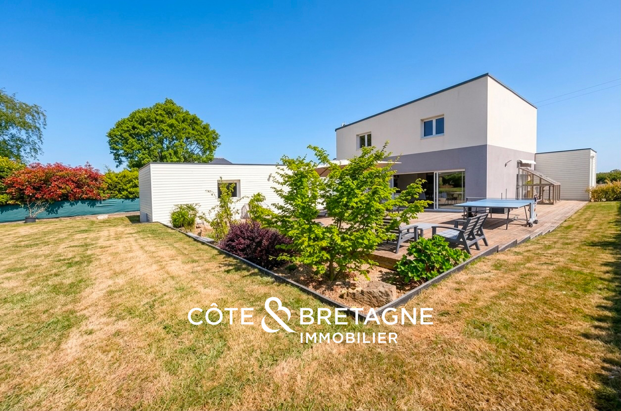 Cette maison à vendre à Yffiniac réunit des critères particulièrement recherchés : construction bois récente, excellente performance énergétique, vie de plain-pied, quatre chambres, vaste terrasse de 100 m² et atelier indépendant. Un lieu de vie cohérent, fonctionnel et ouvert sur l’extérieur, à quelques minutes de Saint-Brieuc.