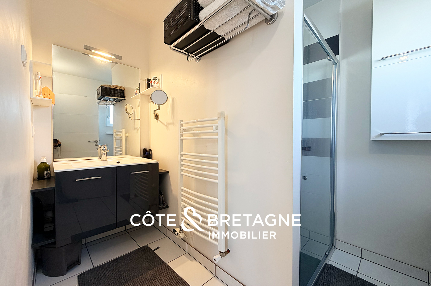 Le rez-de-chaussée accueille une chambre avec salle d’eau, permettant une véritable vie de plain-pied, aujourd’hui particulièrement recherchée sur le secteur de Saint-Brieuc et des communes environnantes.